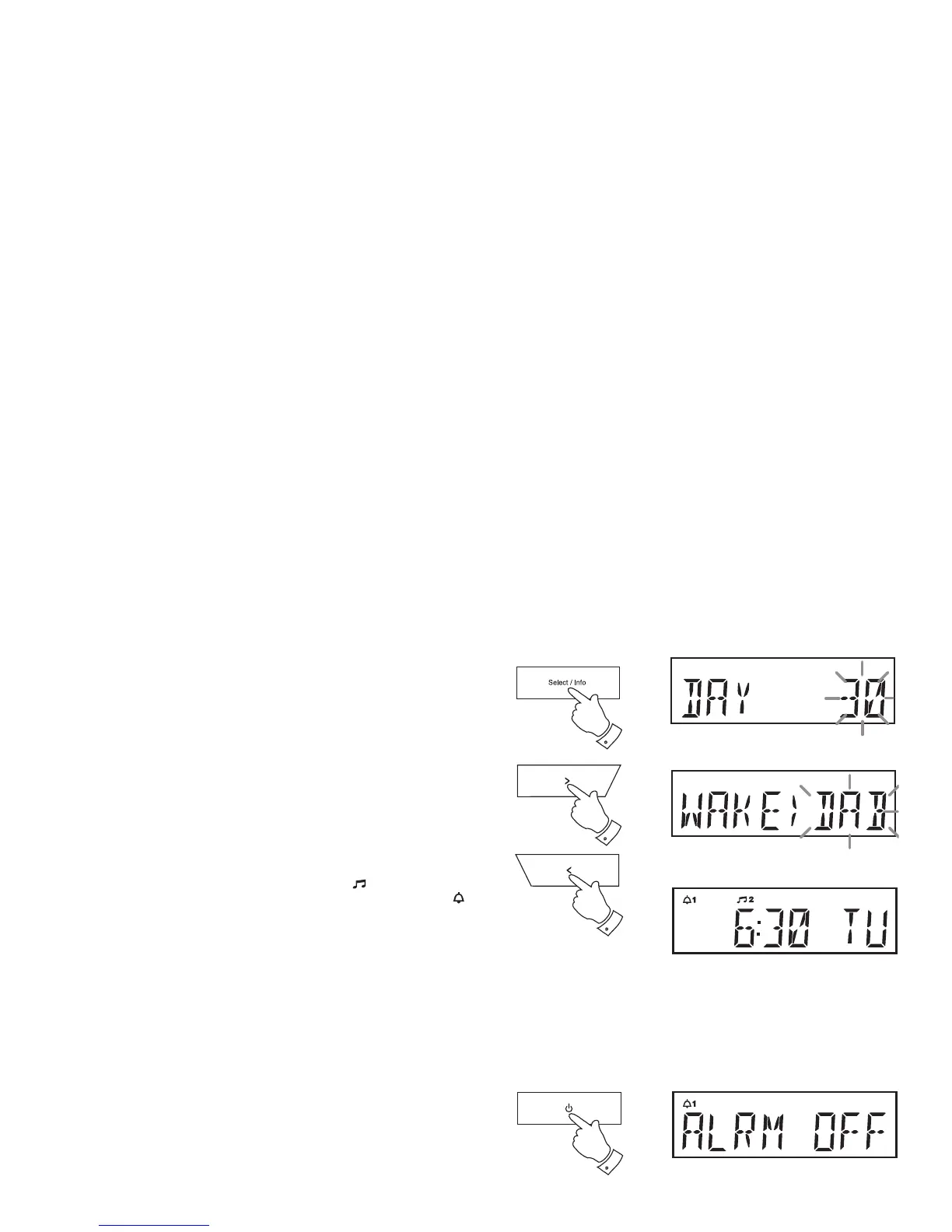 17. Press the Tuning Up or Down buttons to choose the alarm day.