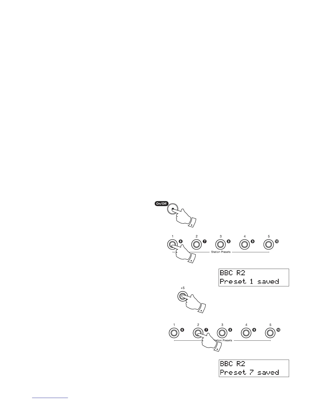 4. Presets 6 to 10 are obtained by pressing and holding +5 button