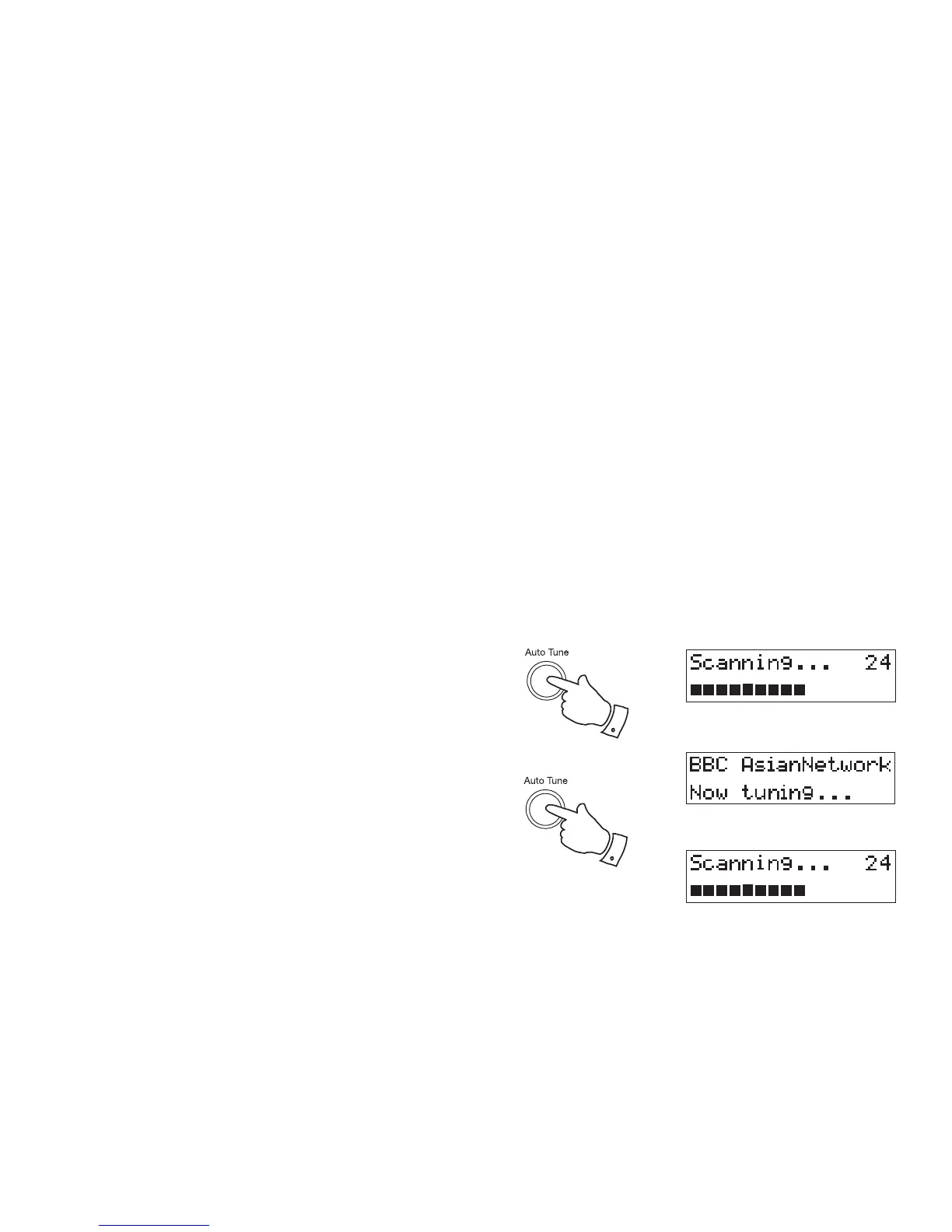 2. To carry out a full scan of the entire DAB Band III frequencies press