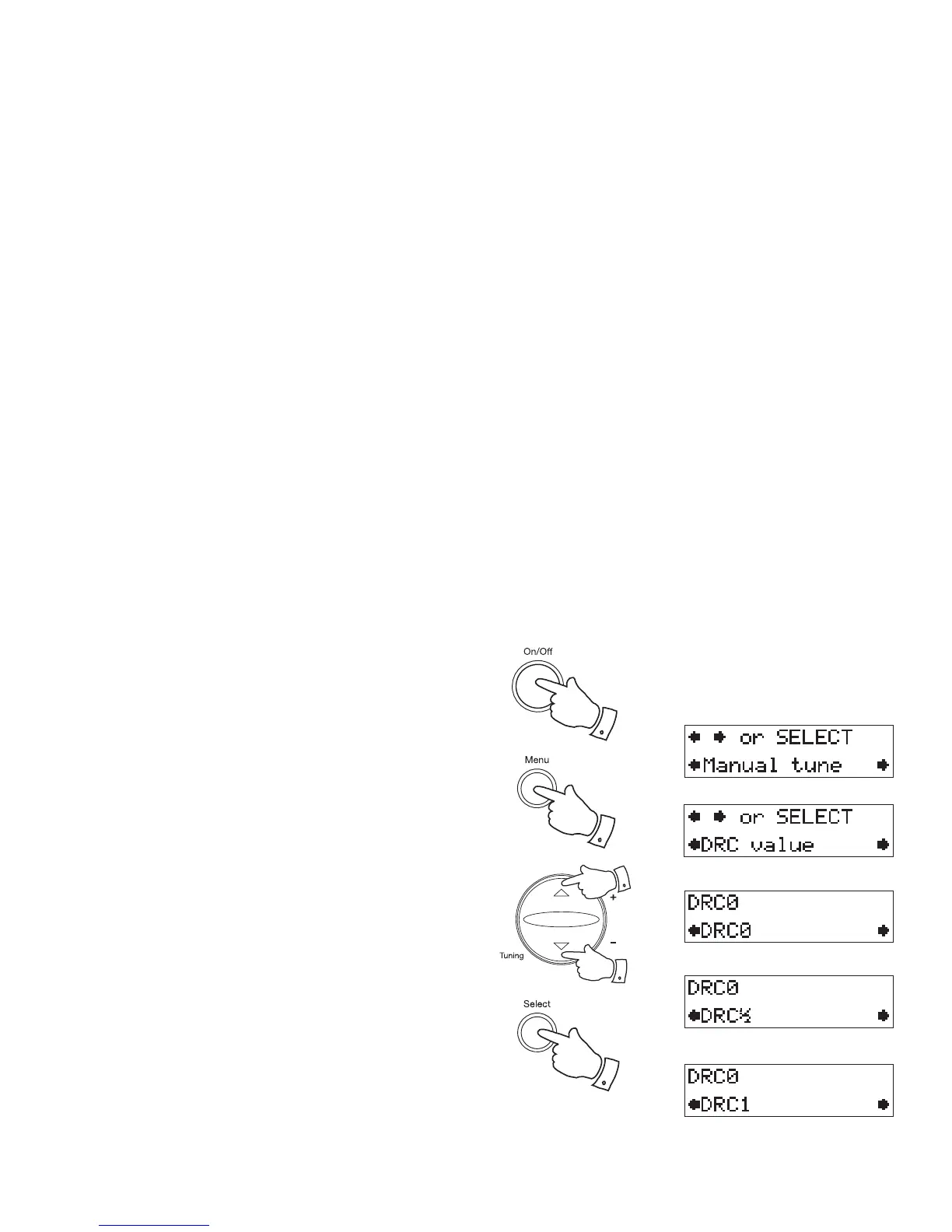 5. Press the Tuning Up or Down buttons to select required DRC setting
