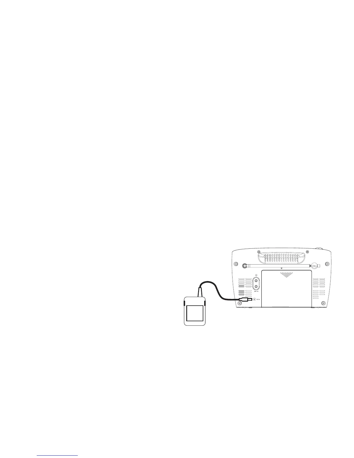 1. Place your radio on a fl at surface and plug the mains adaptor into the
