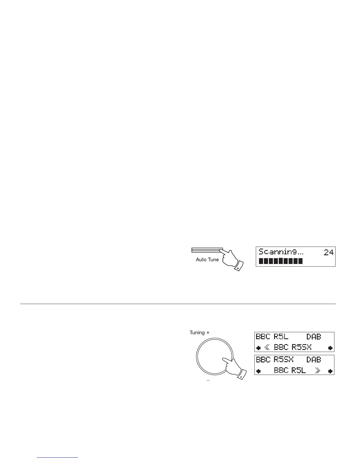 "Scanning..." and your radio will perform a scan of the Band III DAB