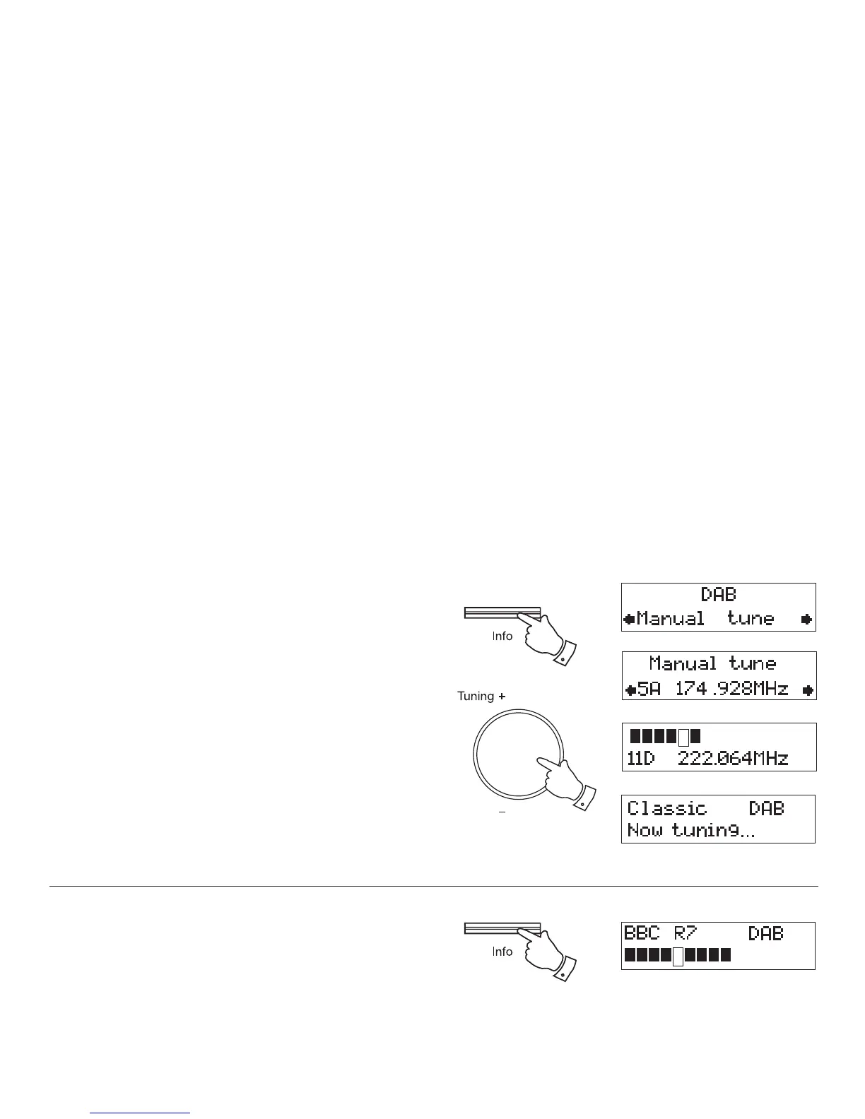 Manual tuning allows you to tune directly to the various DAB Band III