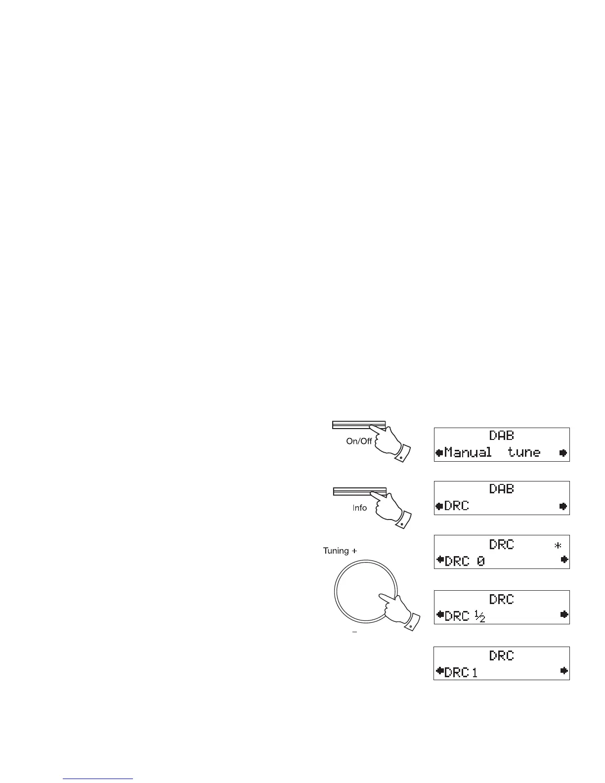 Note: Not all DAB broadcasts are able to use the DRC function. If the