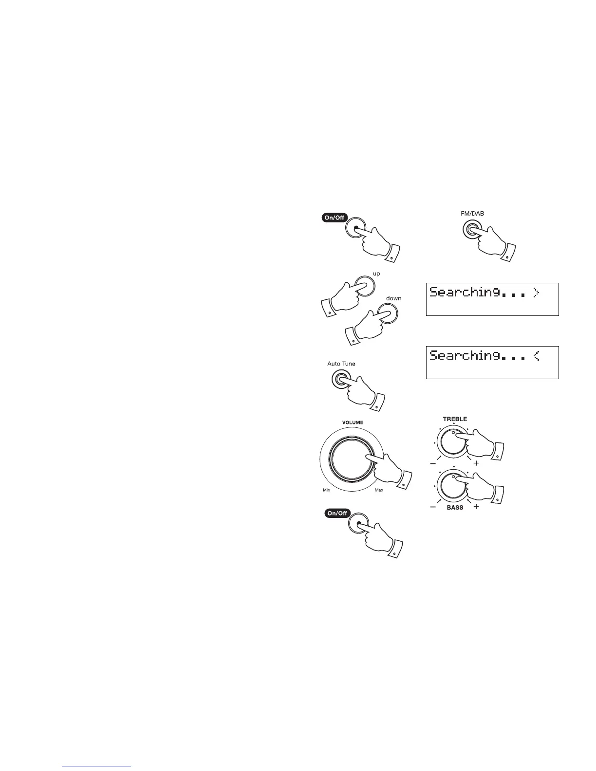2. Press the On/Off button to switch on your radio. The radio will tune