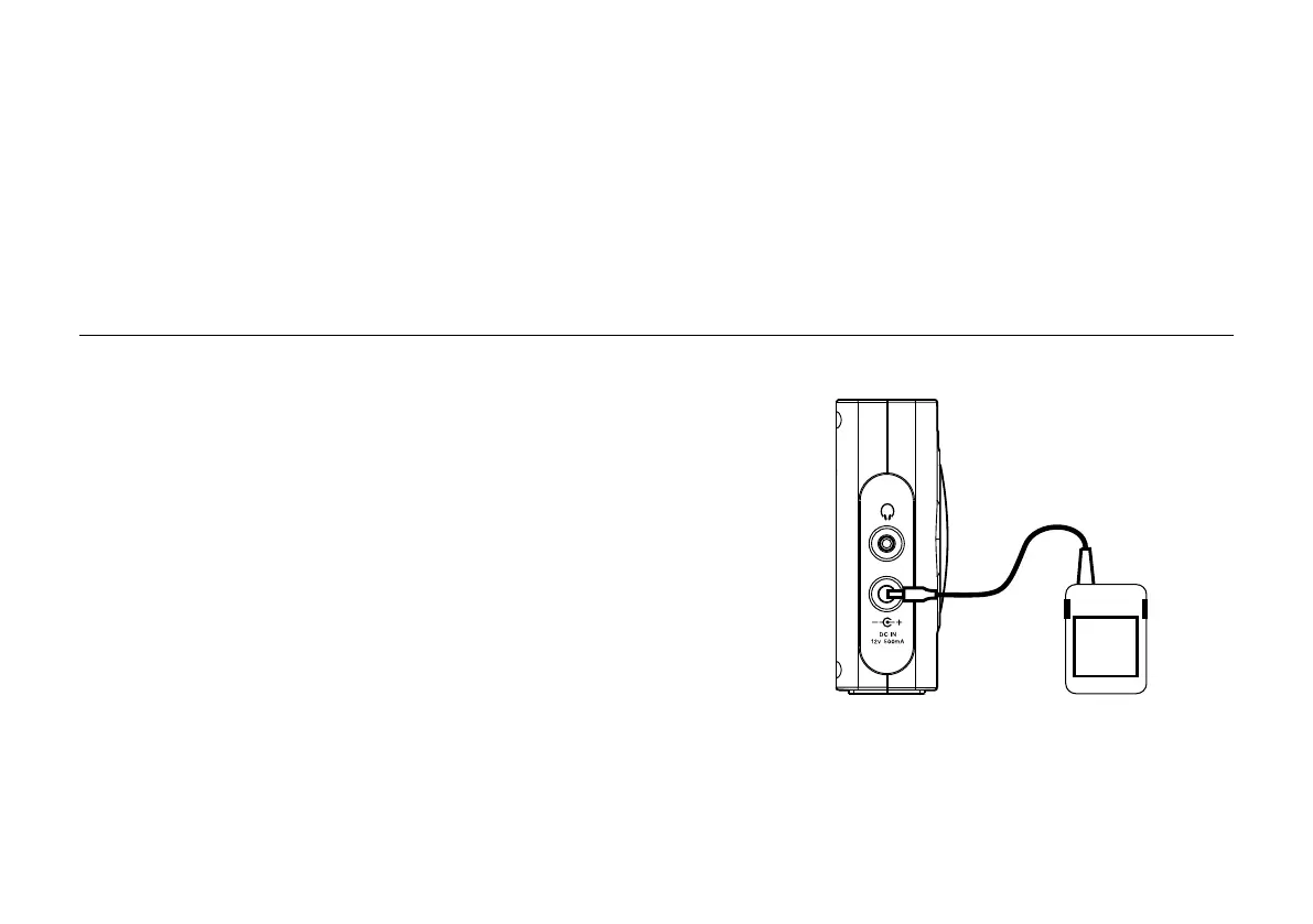 1. Insert the adaptor plug into the DC in socket on the left hand side of
