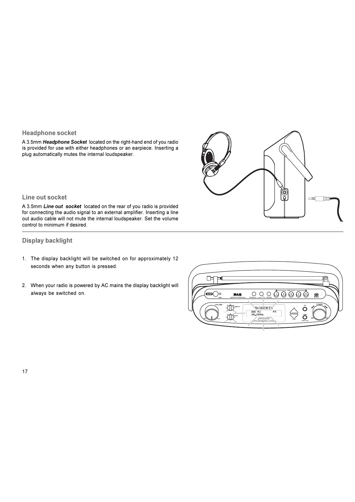 A 3.5mm Headphone Socket located on the right-hand end of you radio