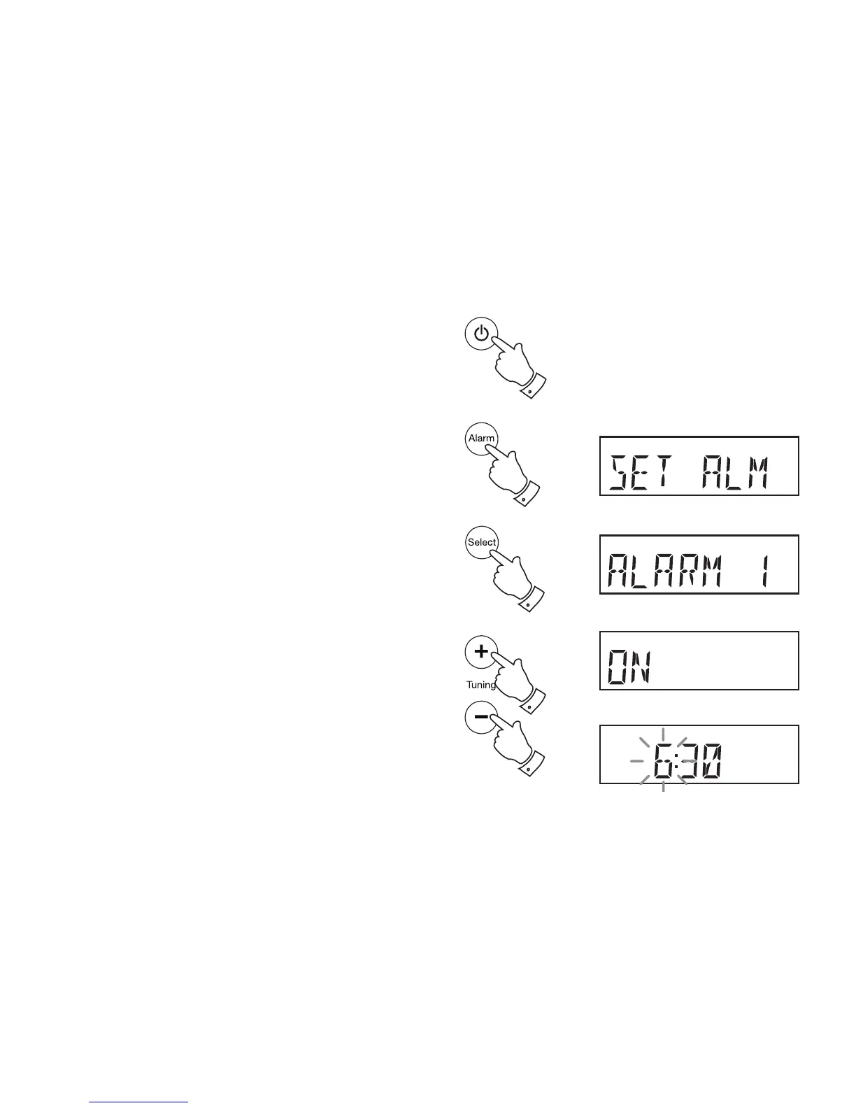 6. Press the Select button to cause the alarm hour digits to flash on the