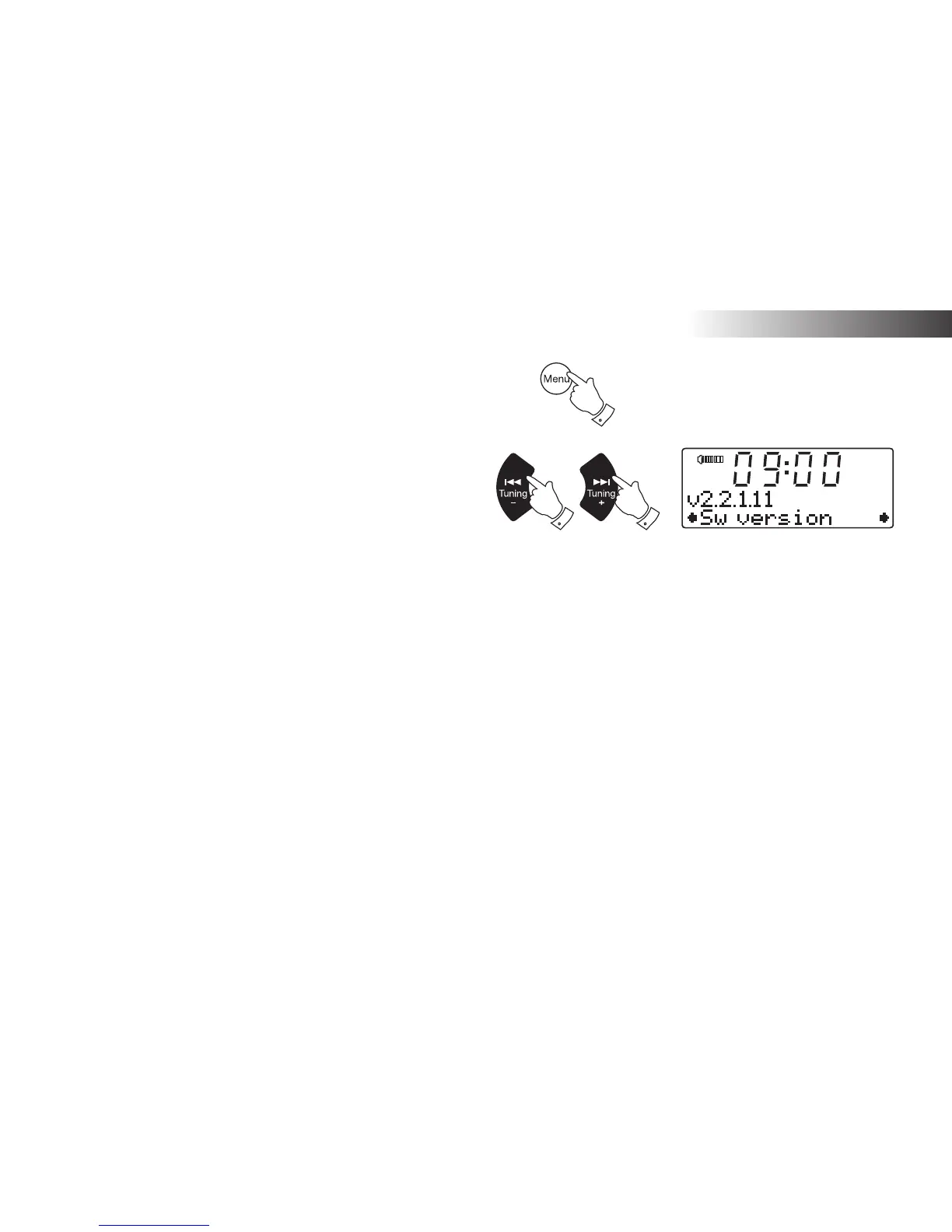 2. Press the Tuning Up or Down buttons until "Software version" appears