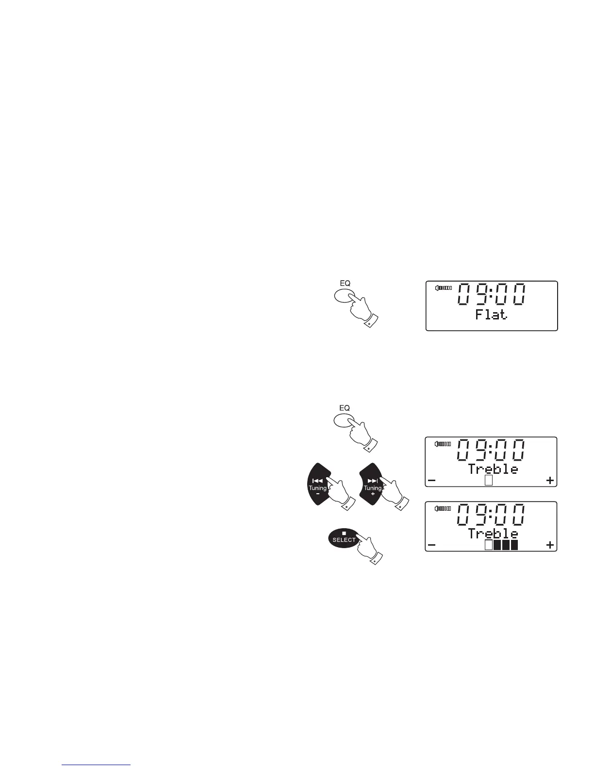 equalizer modes. Alternatively, you may set the treble and bass levels to