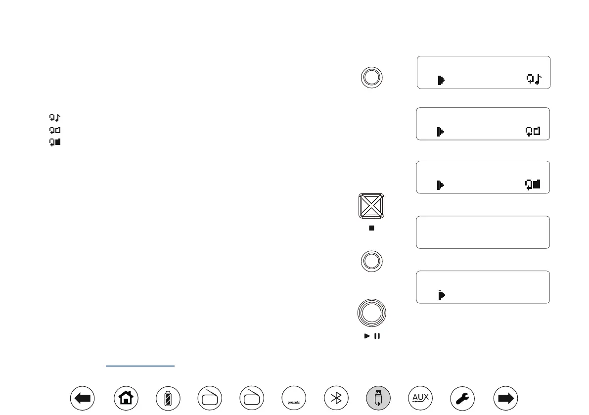 1. Whilst the USB is playing, press the Repeat/Intro button. The radio will step