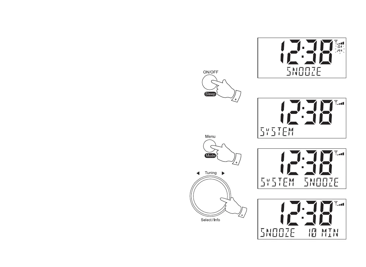 3. Rotate the Tuning/Select control until 'SNOOZE' appears on the