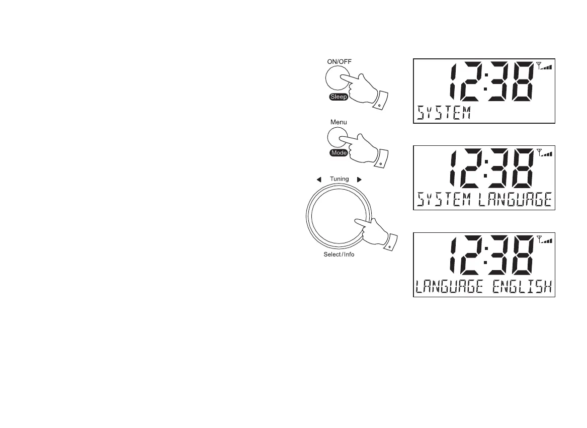 4. Rotate the Tuning/Select control until 'LANGUAGE' appears on the