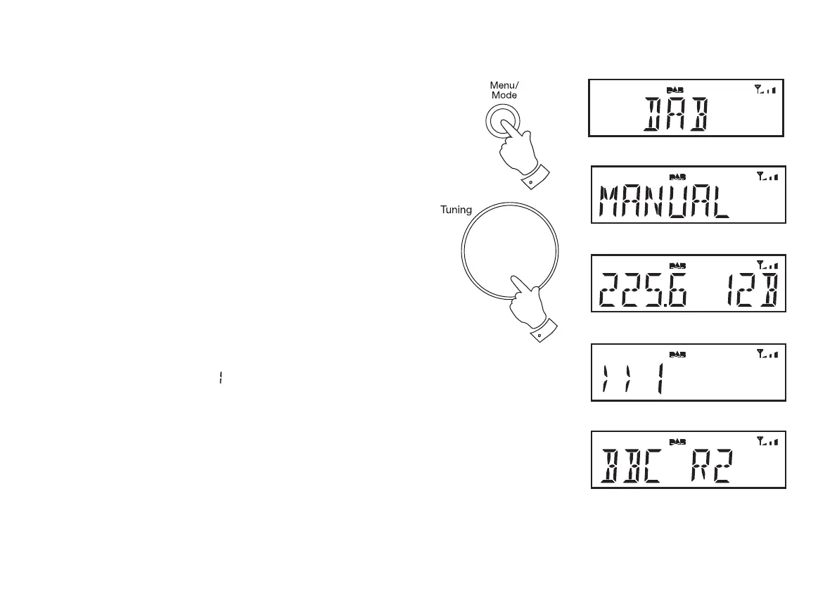 Manual tuning allows you to tune your radio to a particular DAB frequency