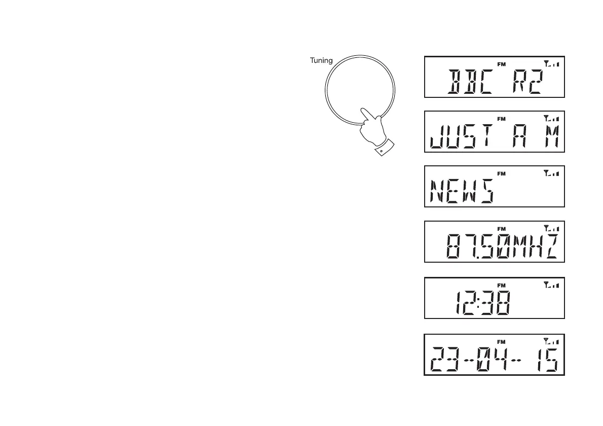 the station name, scrolling text and programme type information. Your radio