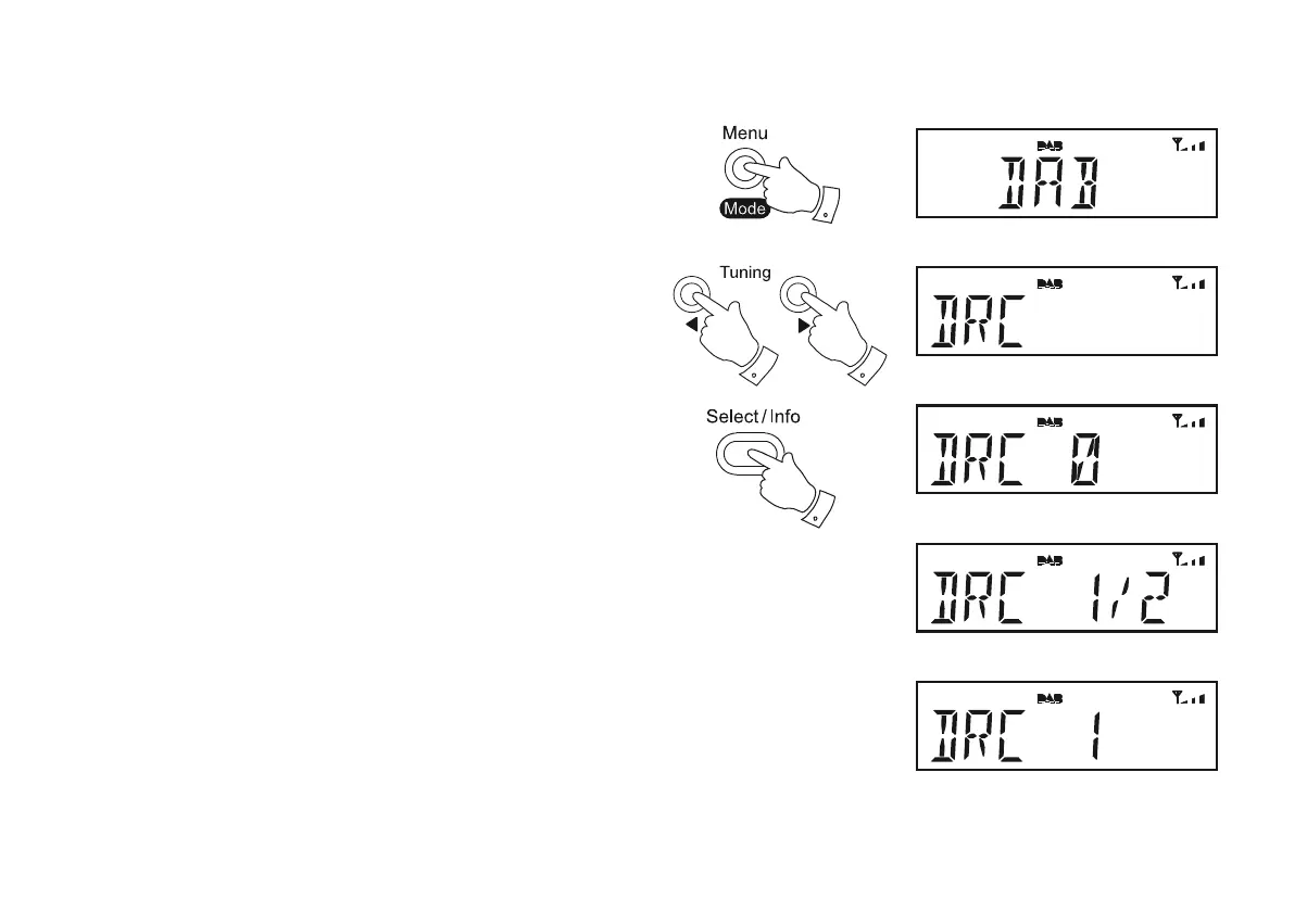 4. Press the Tuning Up or Down buttons until 'DRC' shows on the display.