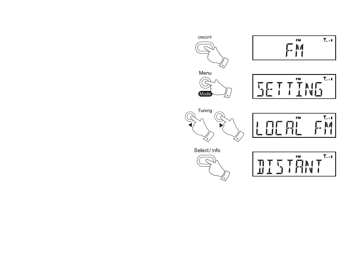 4. Press the Tuning Up or Down buttons to switch between 'LOCAL'