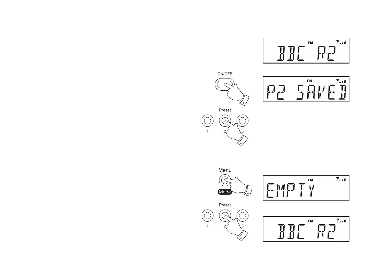 Preset button (1-3) until the display shows, for example, 'P2 SAVED'.