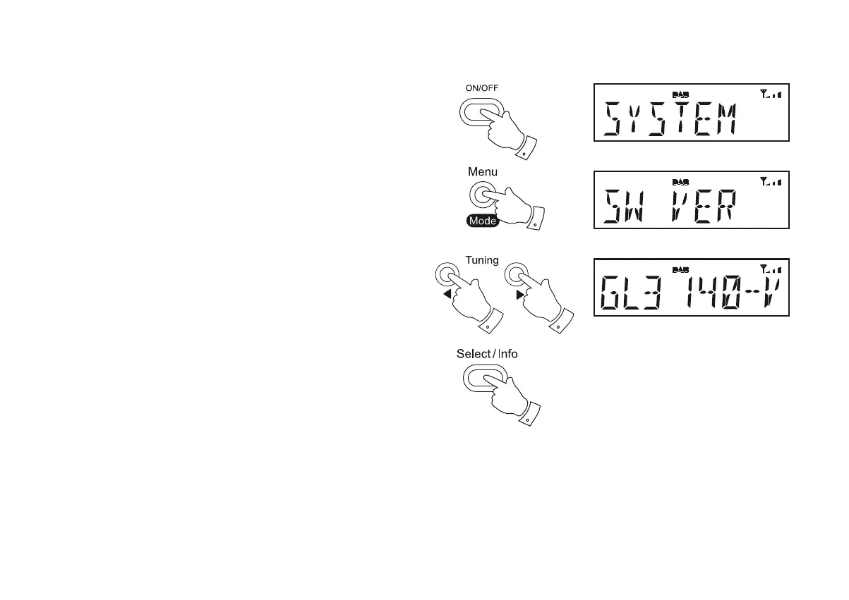 4. Press the Tuning Up or Down buttons until 'SW VER' appears on the