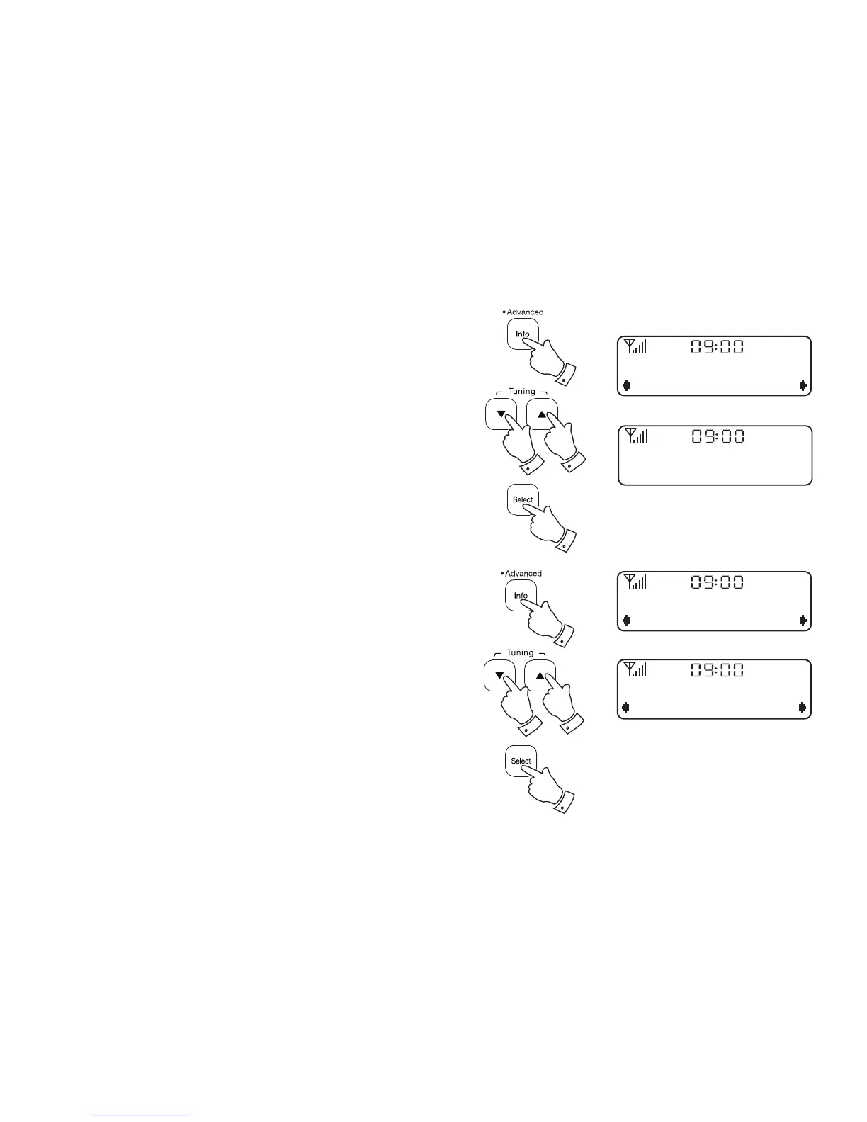 1. Press and hold the Info button until the Advanced DAB or FM menu shows