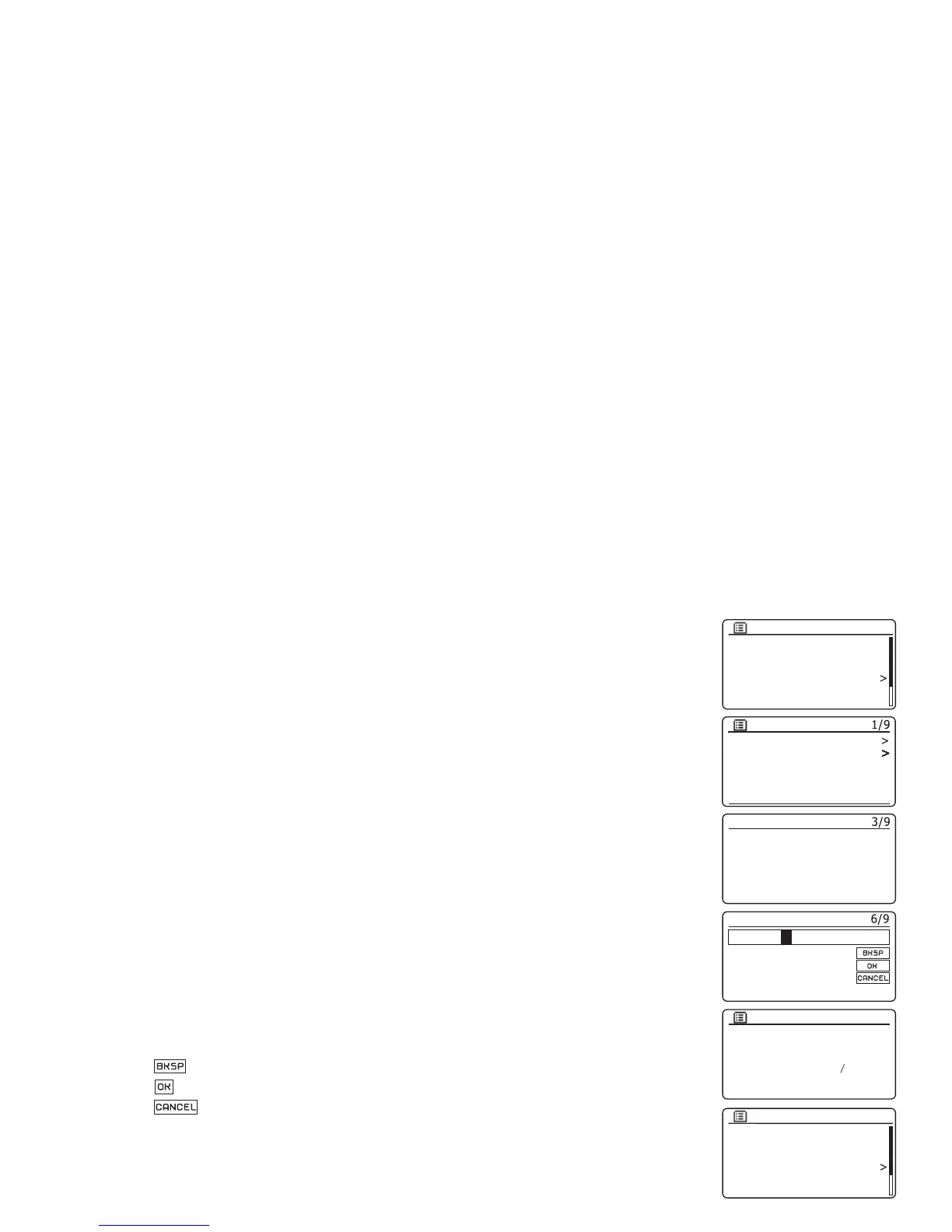 ' to erase a character just entered (long press to clear); Back again to continue