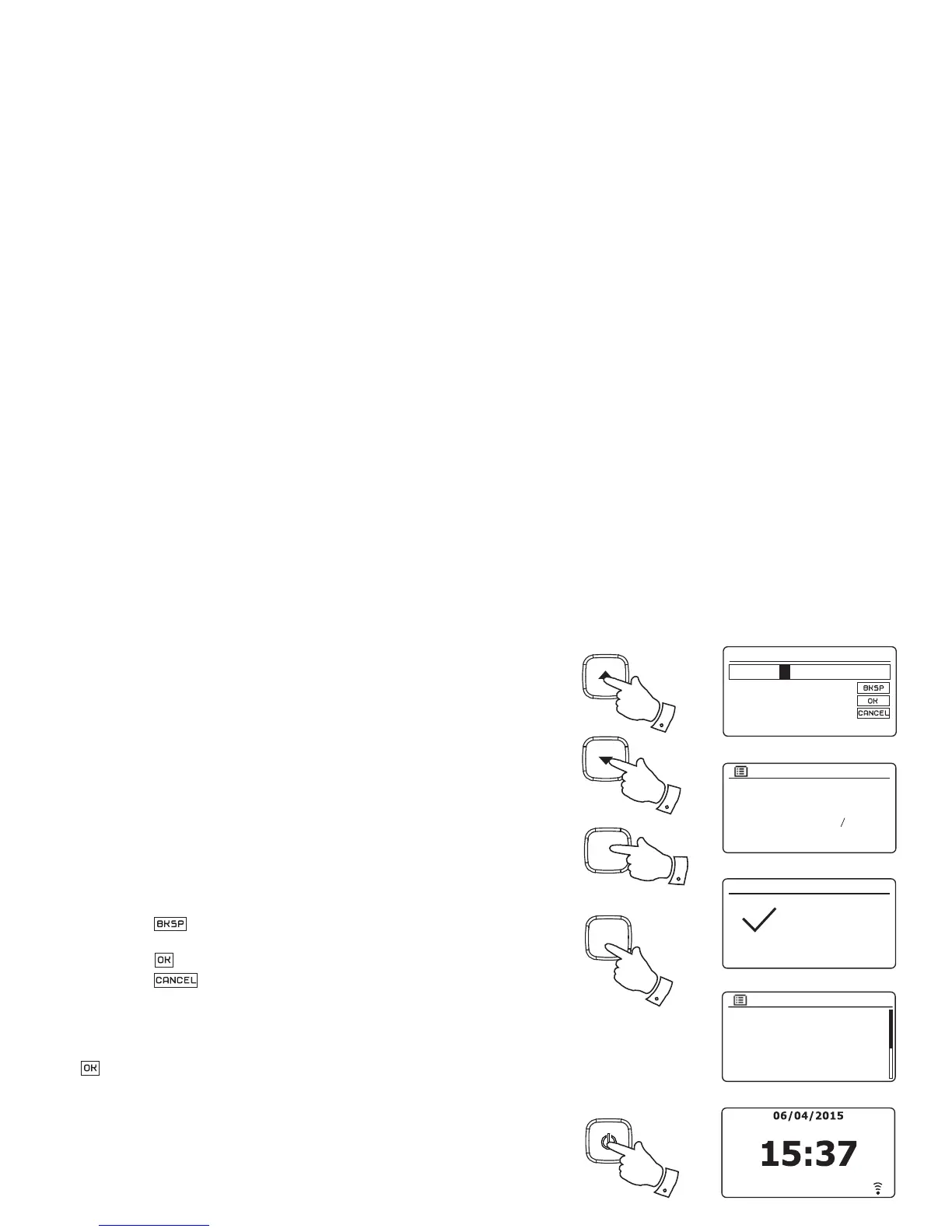9. To enter the WEP or WPA key, characters are selected and entered using the