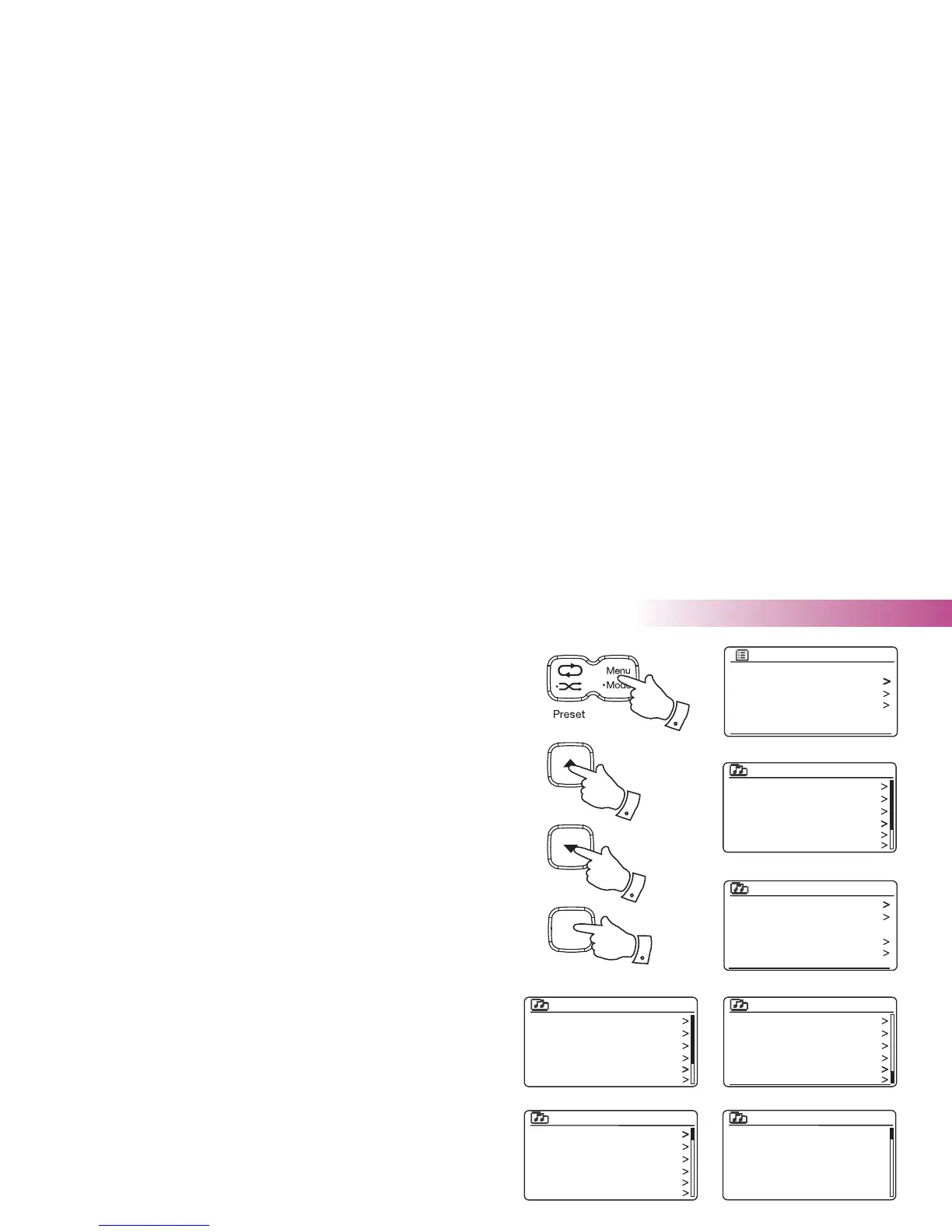 2. Press the Menu button to enter the main Internet Radio menu. Press the