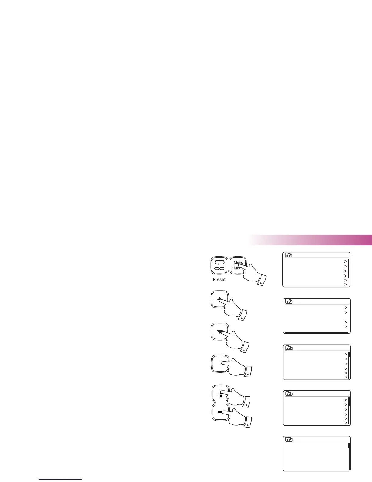 1. Press the Menu button to enter the main Internet Radio menu. Press