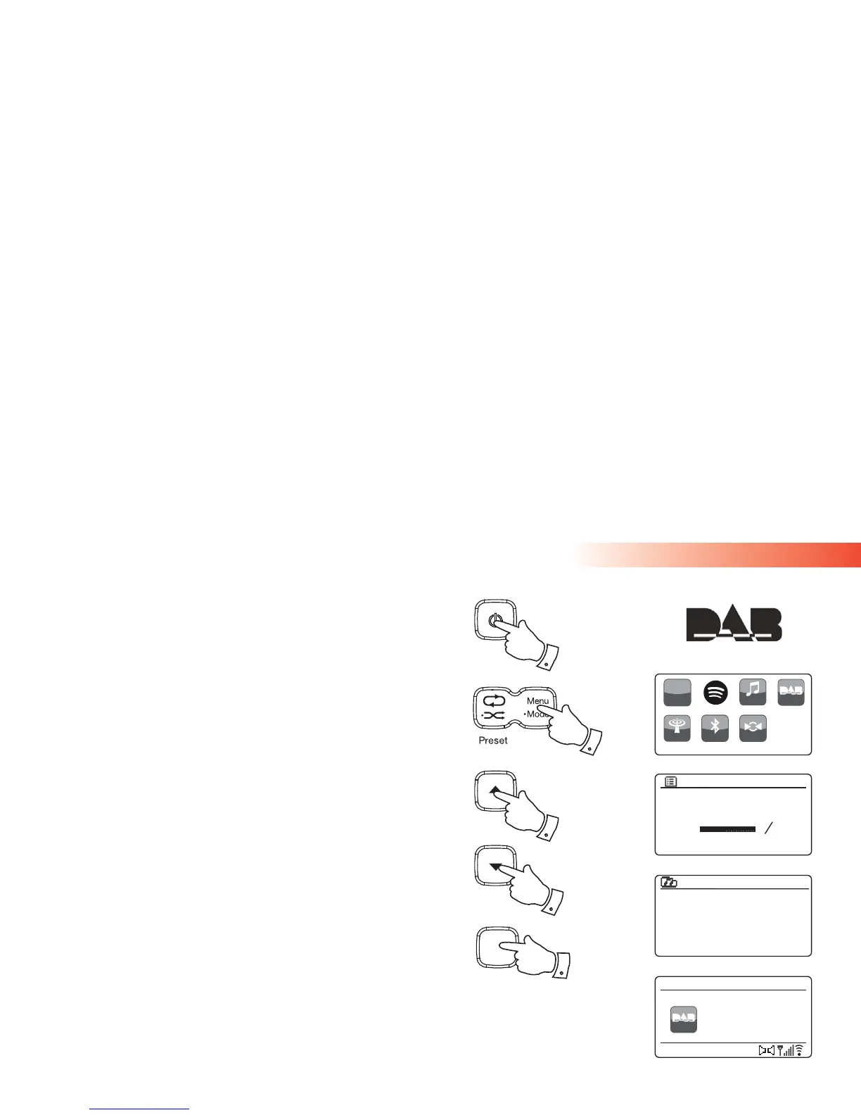 4. If this is the fi rst time that DAB mode is used a scan of the Band III