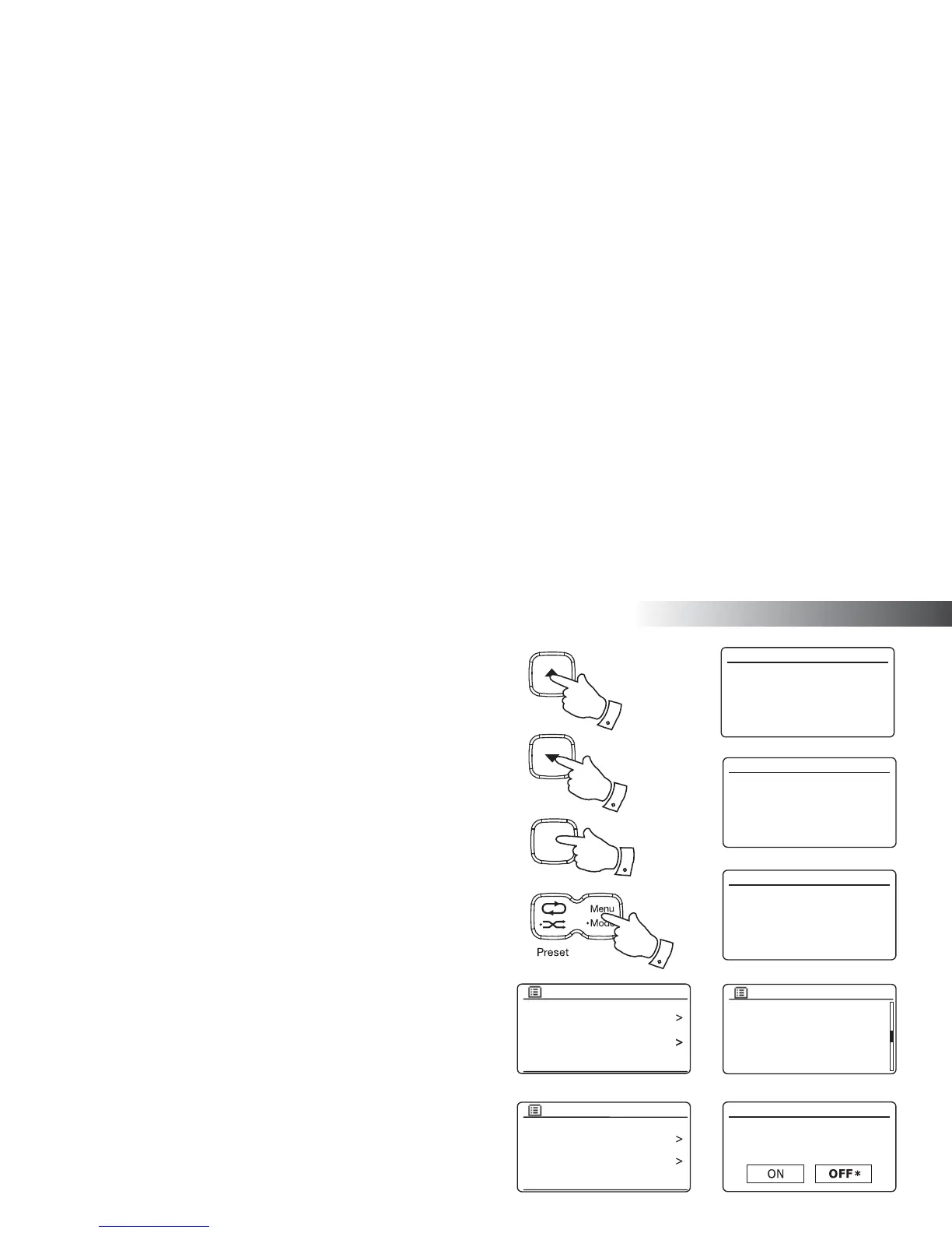 14. Press the Tuning Up or Down buttons to highlight 'ON' or 'OFF' as