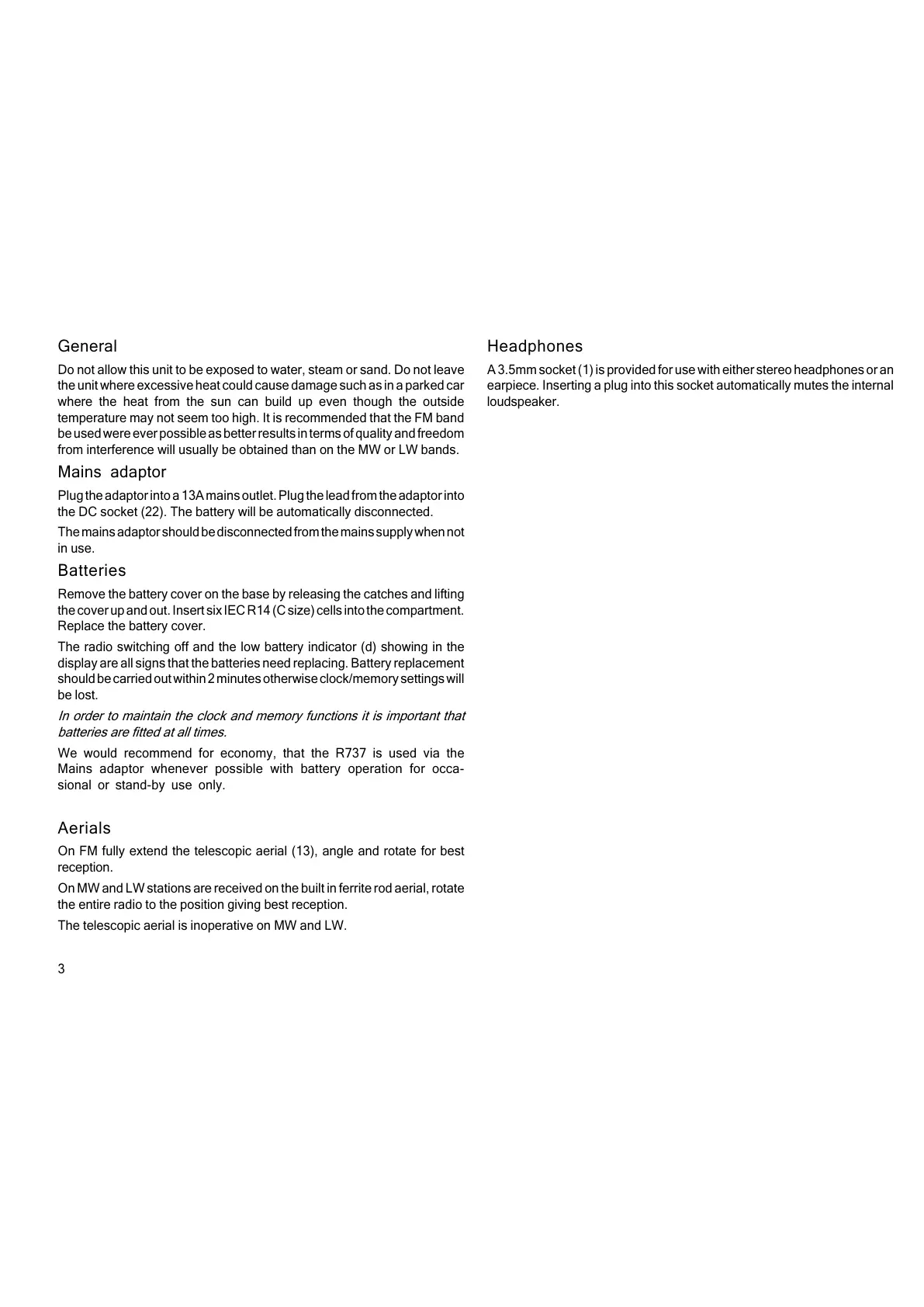 The telescopic aerial is inoperative on MW and LW.