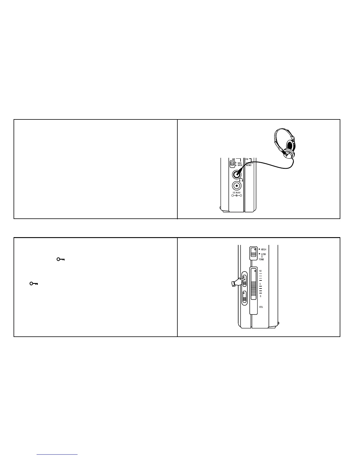 Headphones for use with this radio should be stereo and fitted with a