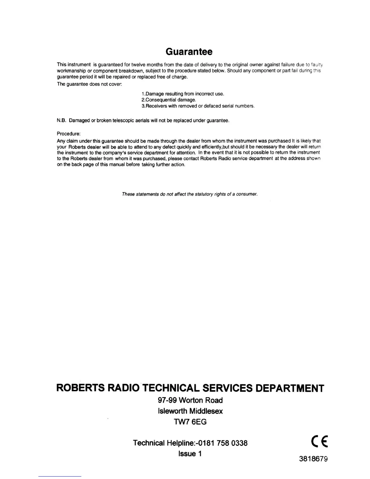 Roberts R861 - GUARANTEE AND SUPPORT; Guarantee Terms; Claim Procedure