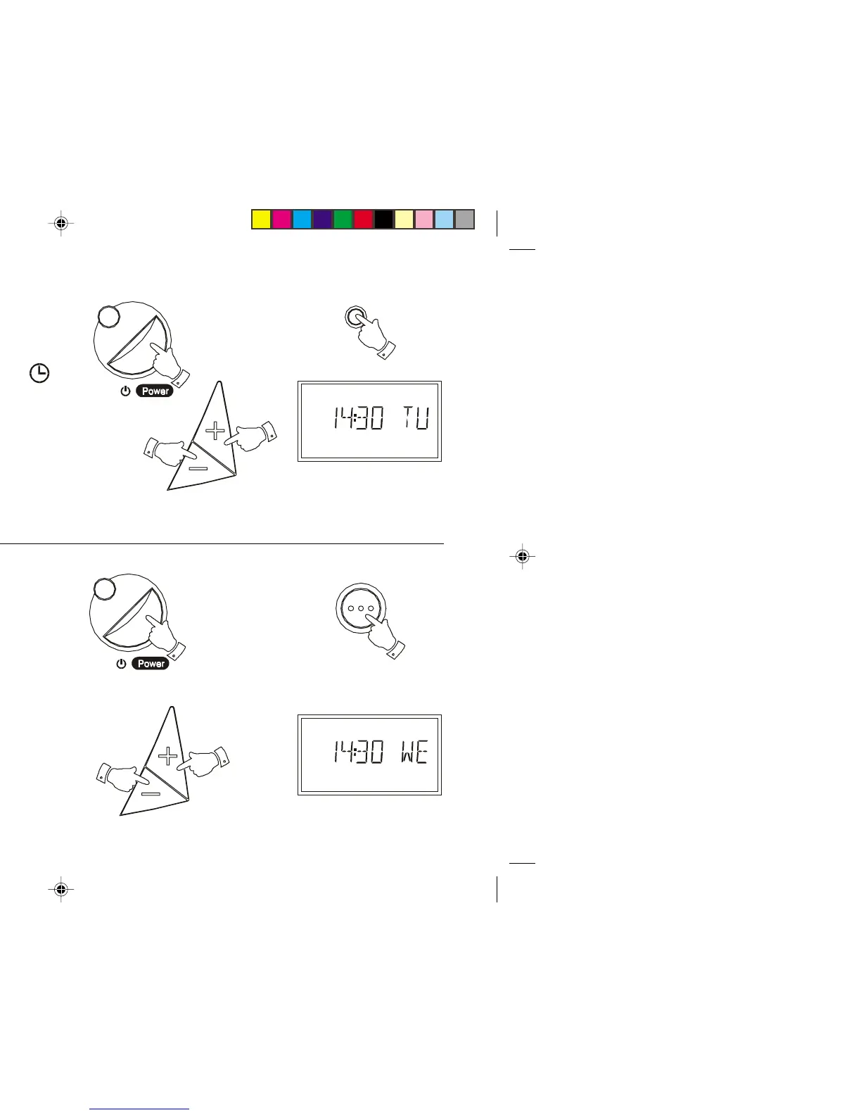 buttons. The clock uses the 24 hour system e.g. 2:00pm is shown as