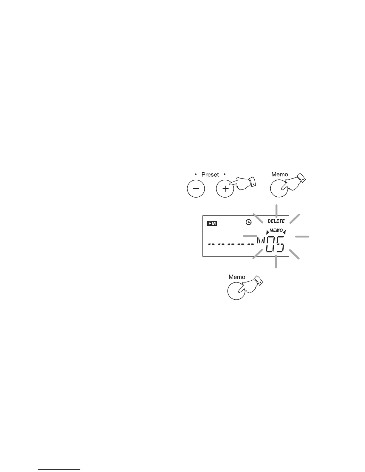 'Memo' and 'Delete' flash in the display.