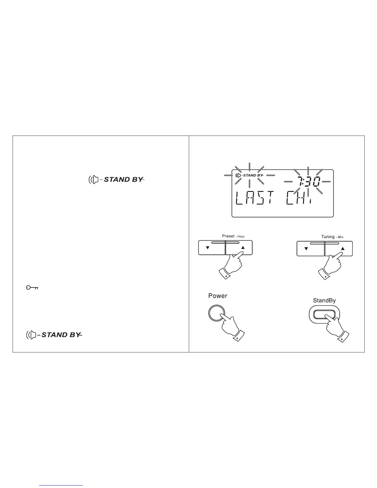 and - buttons. Press and release the Standby