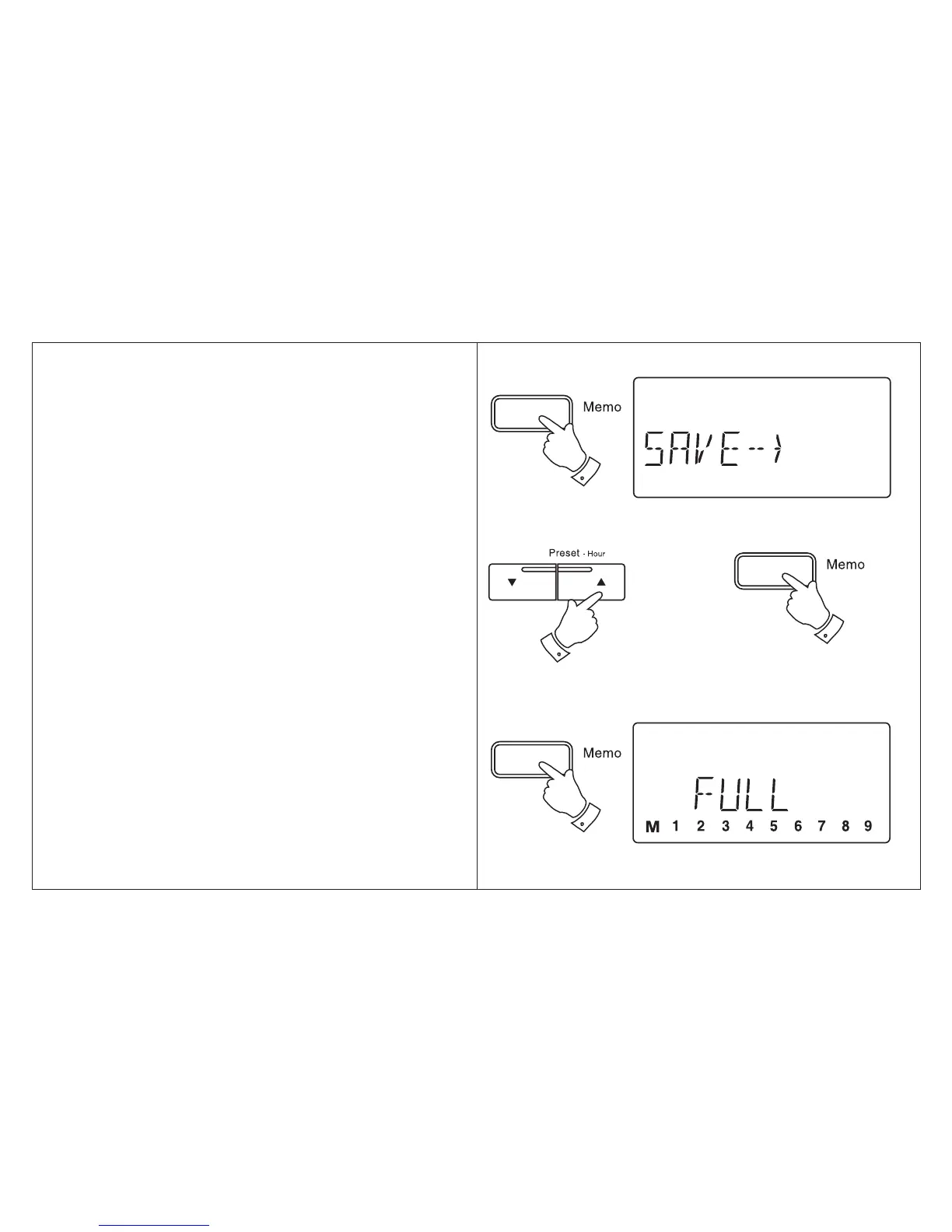 4. Press and release the Memo button to store the