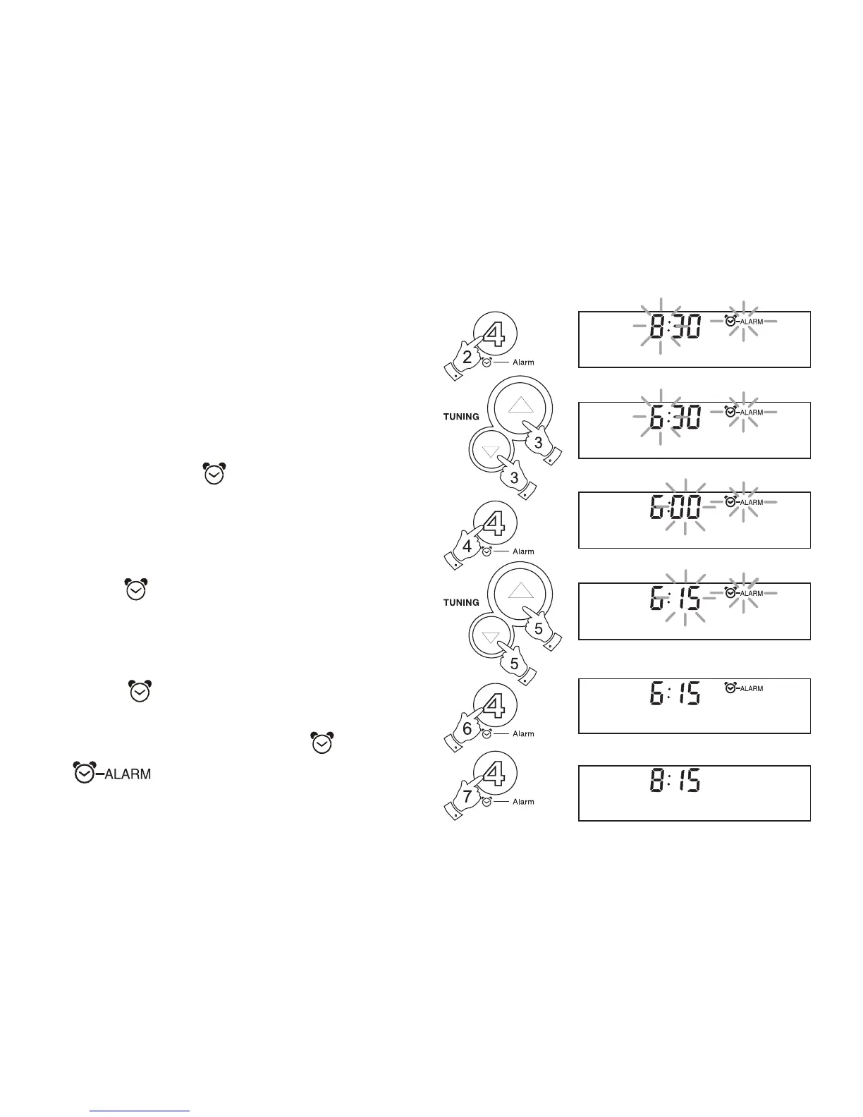 3. Press the Tuning up/down buttons to set the required hour. The