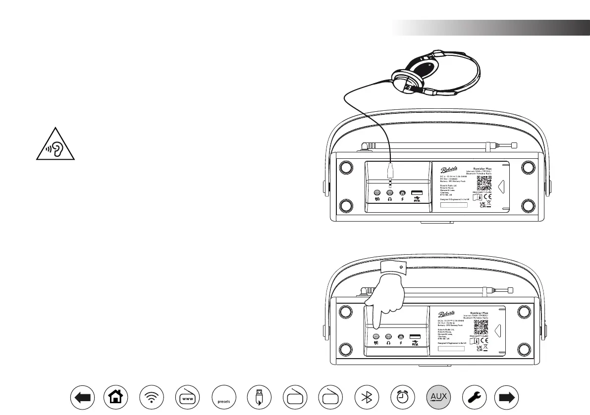 A 3.5mm Auxiliary Input socket located on the underside of your radio for