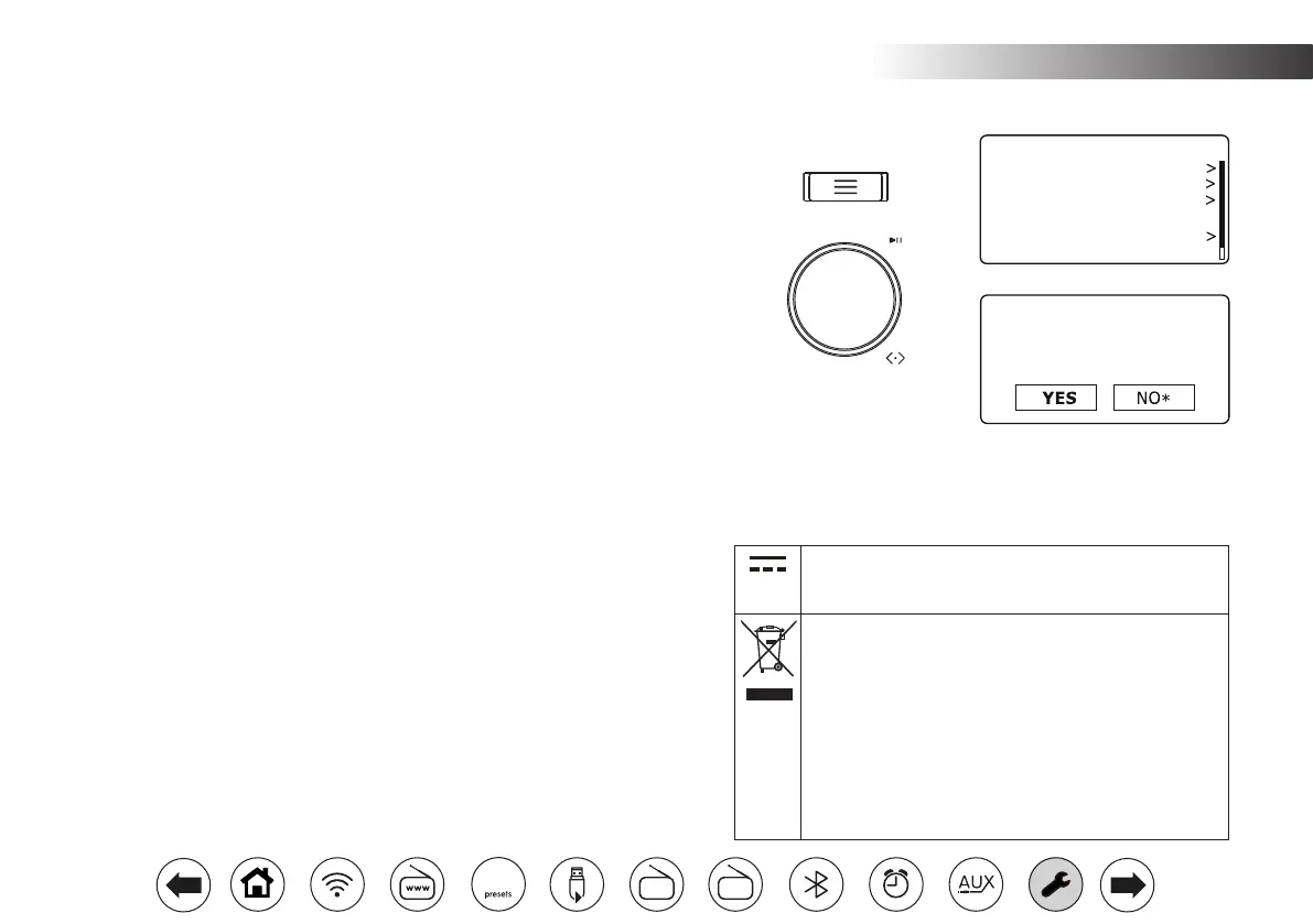 preset stations will be erased and your WiFi network connection details will