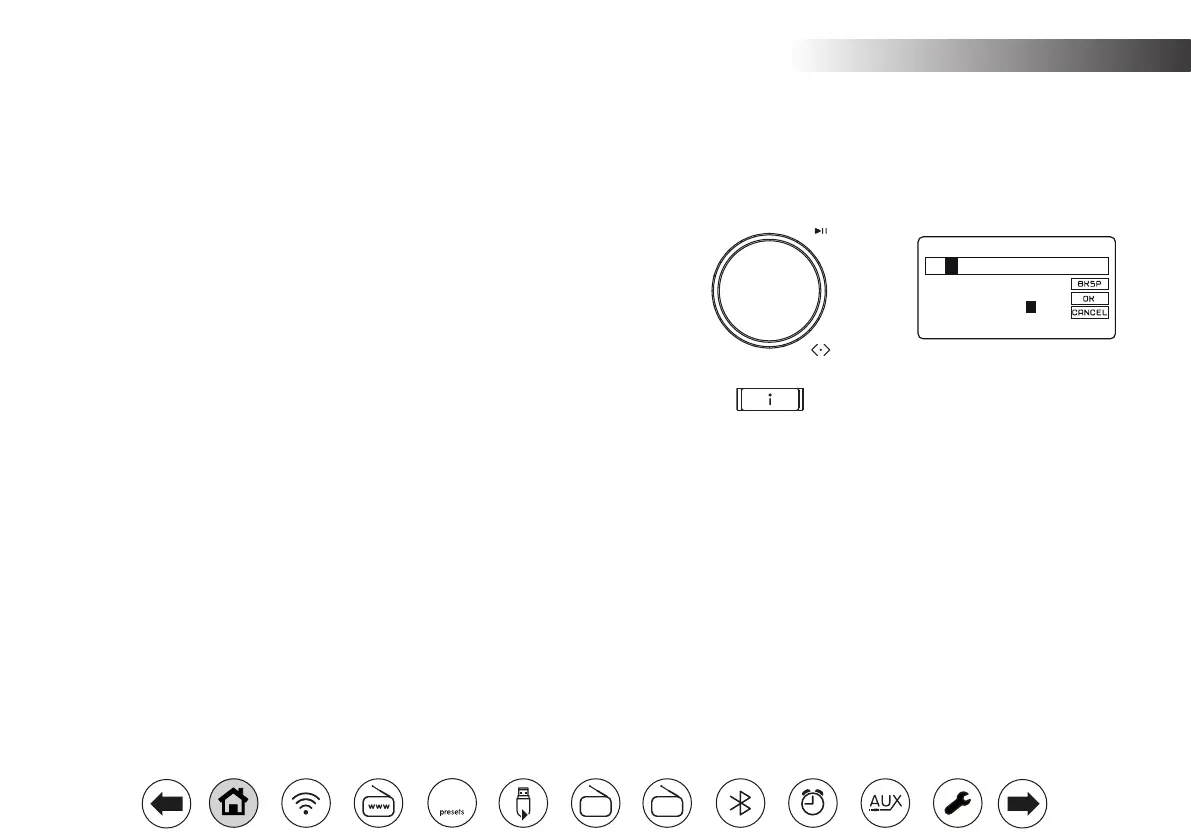 There are several occasions when you may need to enter text characters into your radio. For example, when setting up the WiFi connection, or when