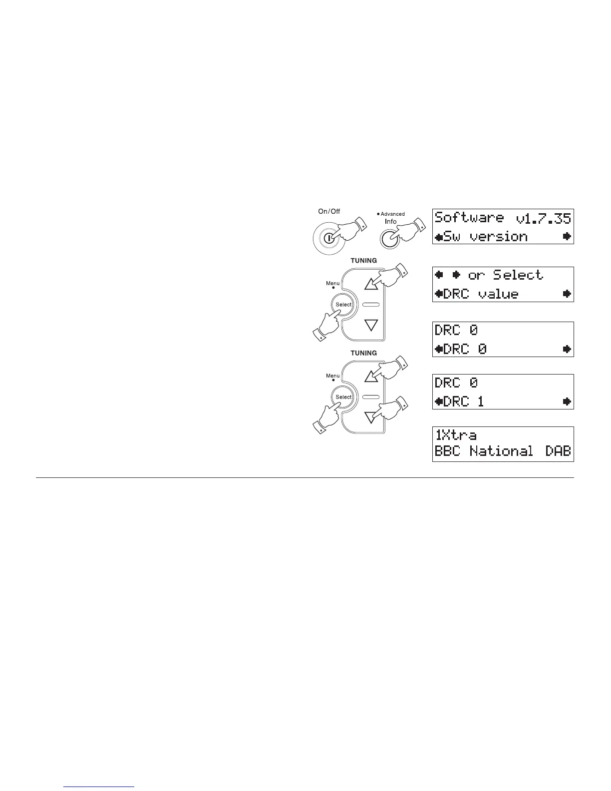5. Press the Tuning Up/Down buttons to select required DRC setting