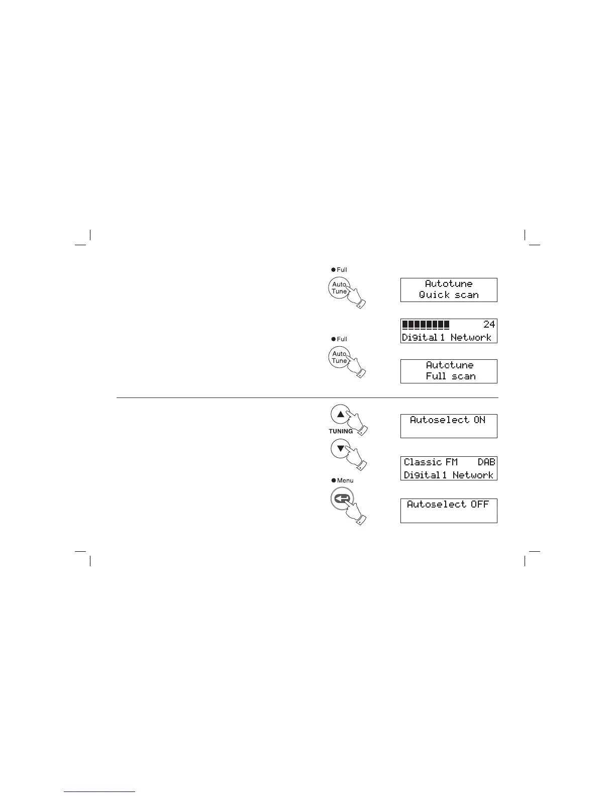 release. The display will show "Autotune Full scan". As new stations