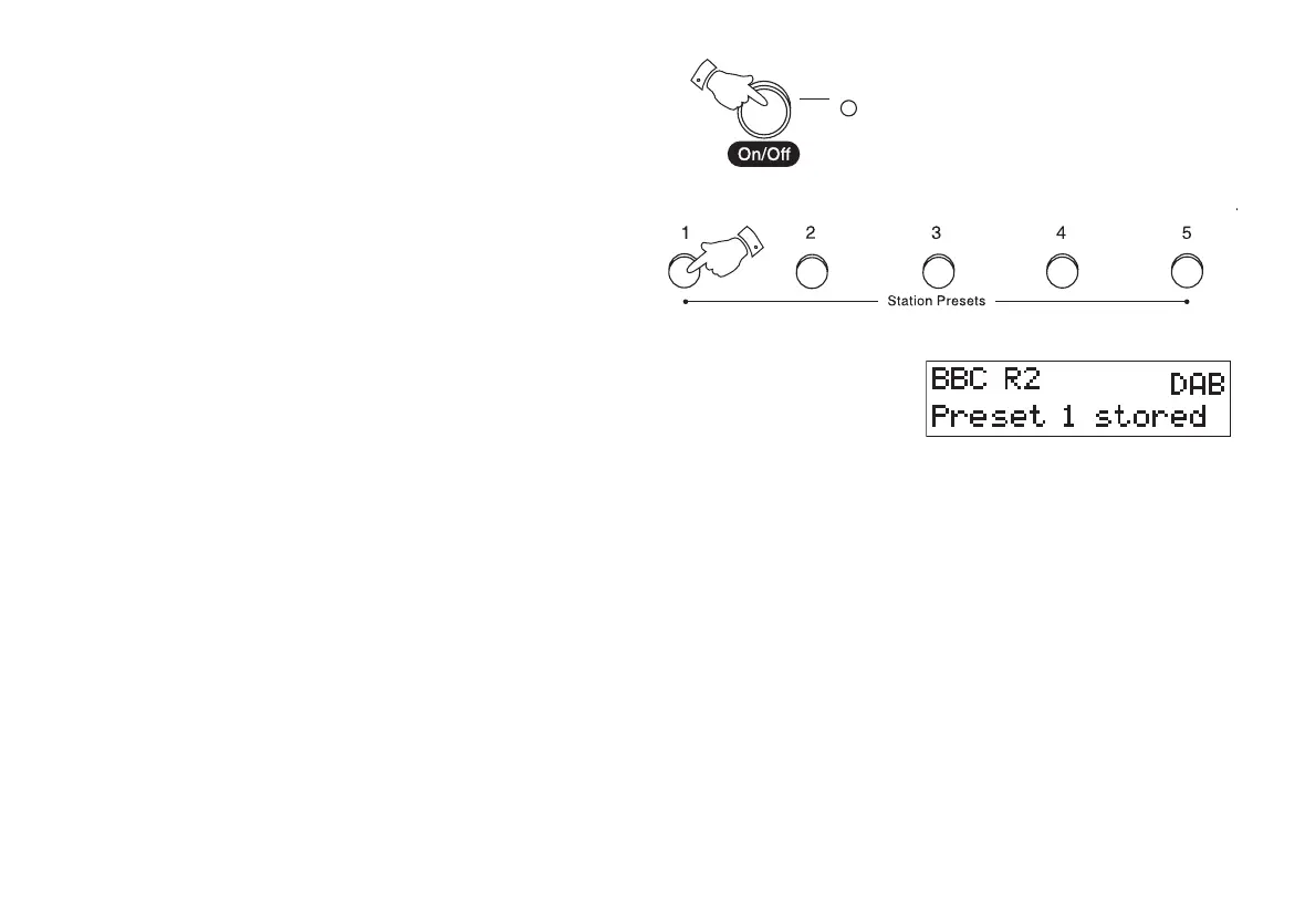 1. Press the On/Off button to switch on the radio.