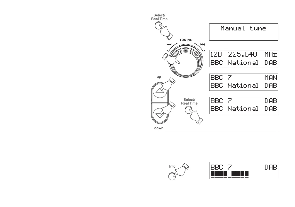 4. Rotate the Tuning control or press the Up or Down buttons to