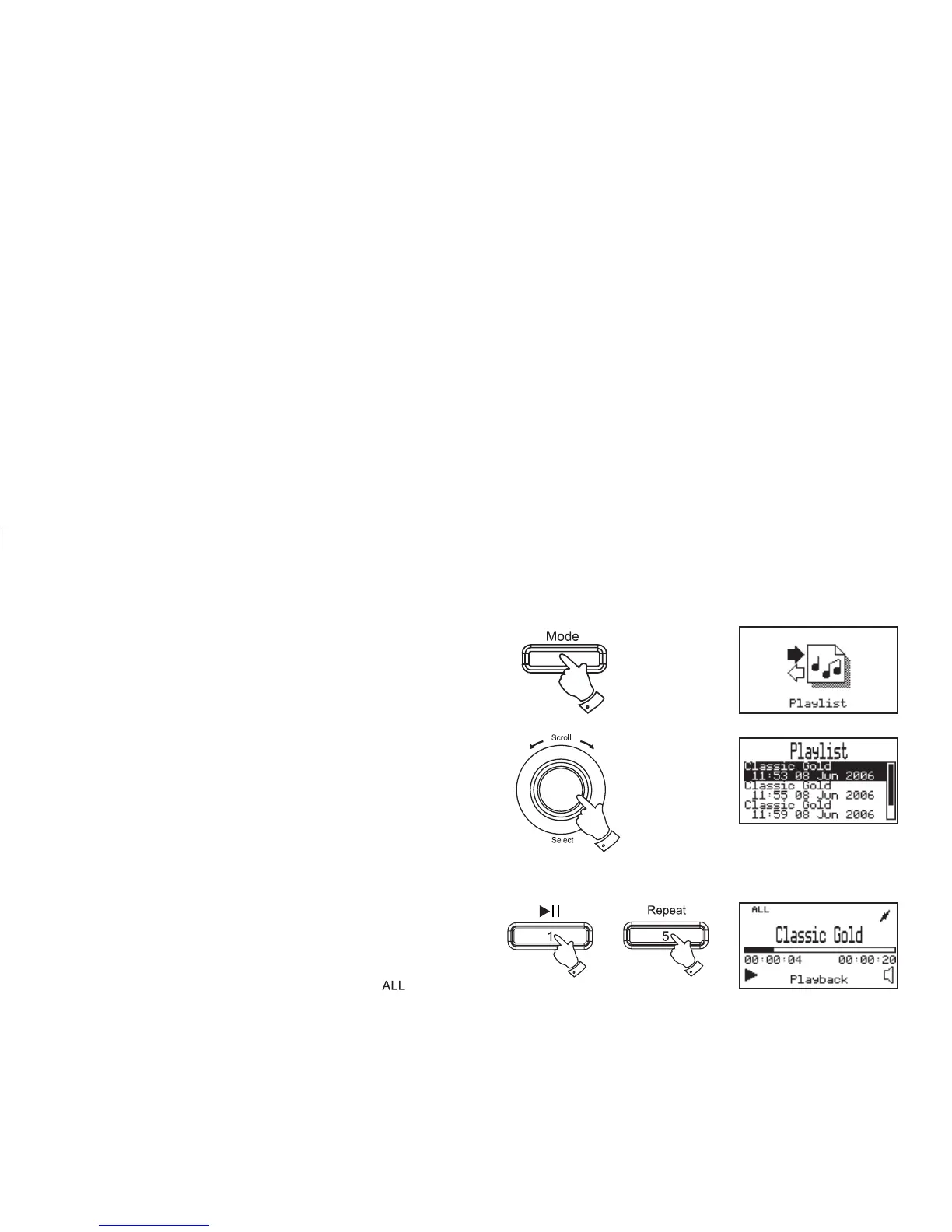 2. Press the Mode button until the Play list mode is selected