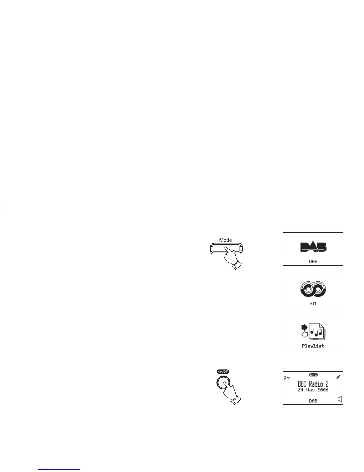 Your radio has 3 operation modes, DAB, FM and Playlist mode.