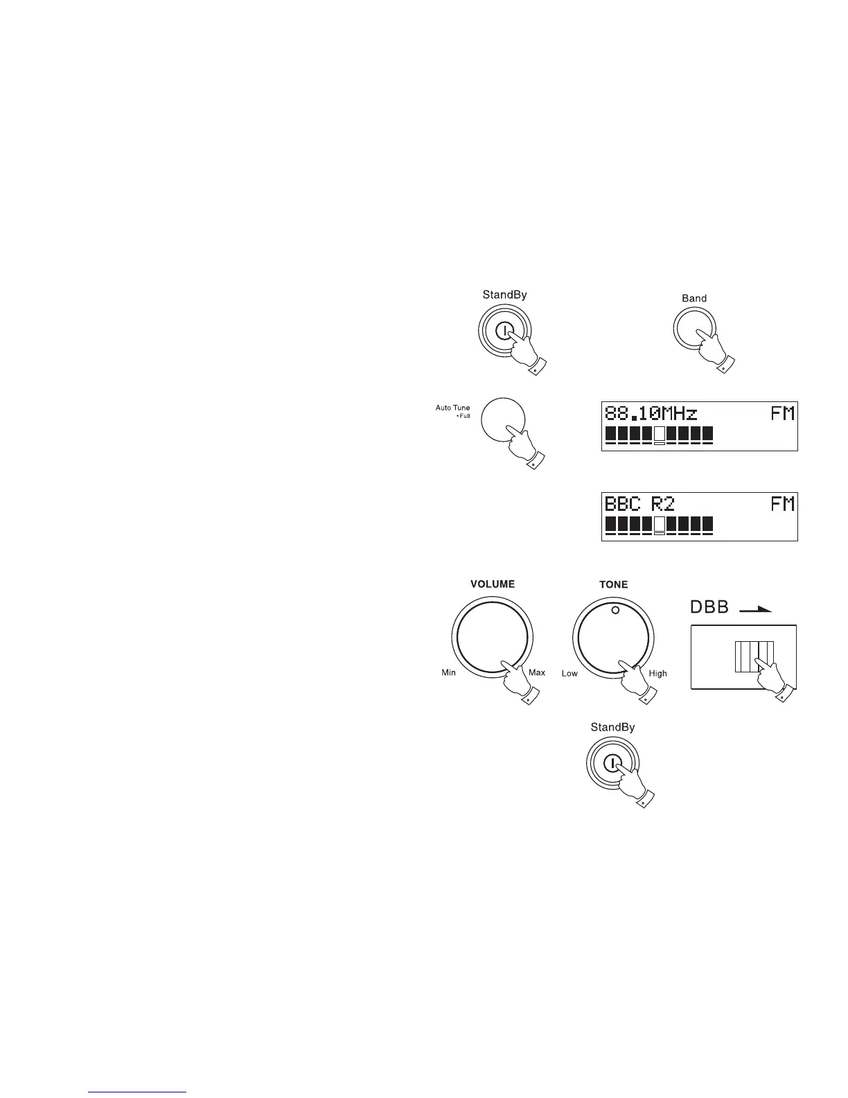 9. Adjust the Volume, Tone and Deep bass boost switch to the