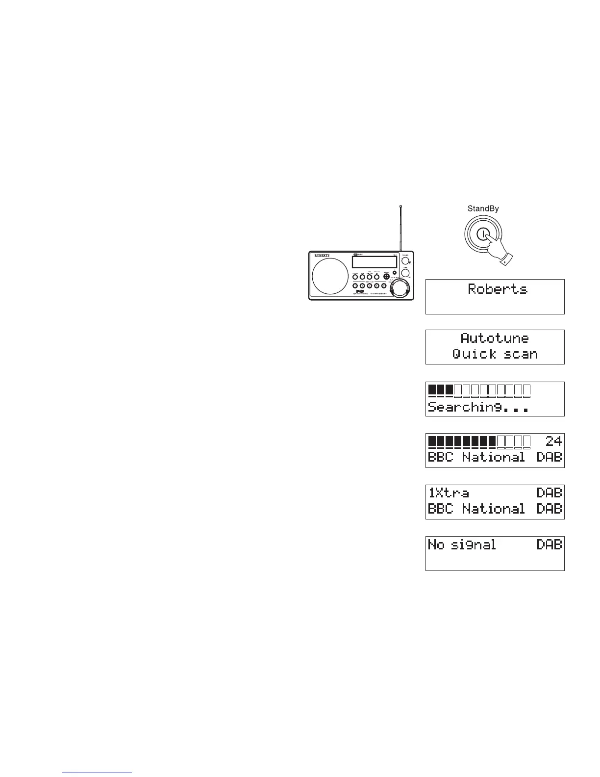 show "Roberts DAB digital radio" for a few seconds.