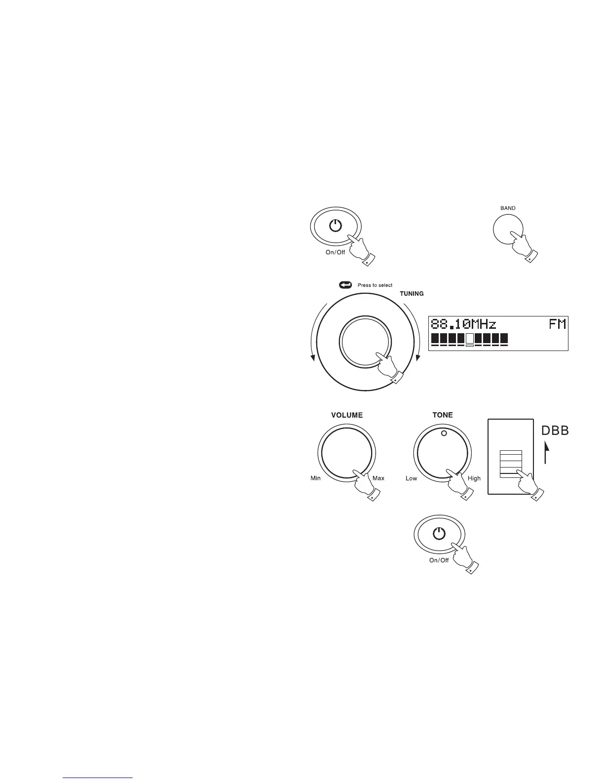 1. Press the On/Off button to switch on your radio.